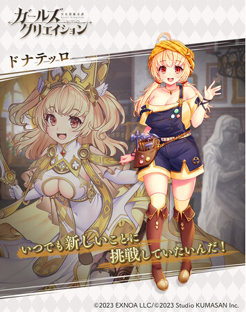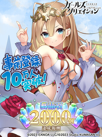 合同会社EXNOA(本社:東京都港区、CEO:村中 悠介、URL:https://games.dmm.com/)が運営するDMM GAMESにおいて、「クリエイティブチーム くまさん」第4弾作品となる新作タイトル『ガールズクリエイション -少女藝術綺譚-』(以下、『ガールズクリエイション』)の事前登録者数が10万人を突破したことをお知らせいたします。