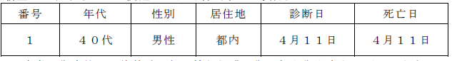 都内で新型コロナウイルスに感染した方が死亡されましたのでお知らせします。