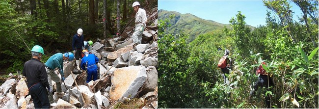 (2021年度助成先活動風景 左・北アルプス飛騨側登山道等維持連絡協議会 右・西川山岳会)