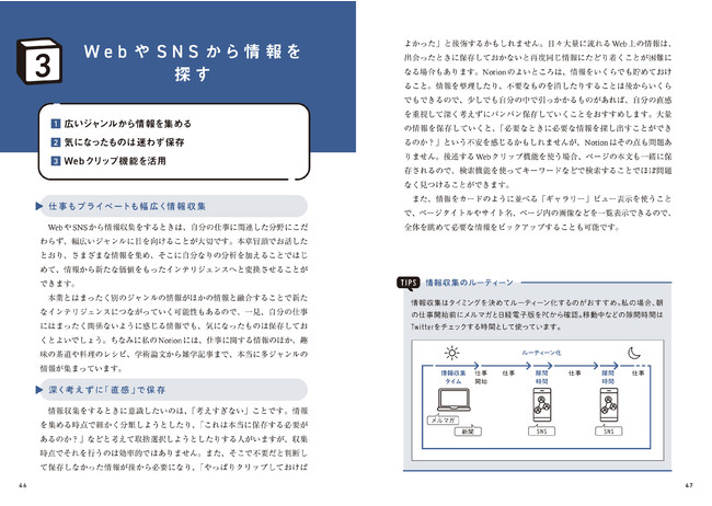 人気沸騰中のオールインワン・ワークスペース「Notion」(ノーション)。書類作成はもちろん、タスク管理、スケジュール管理、データベース、チームでのコラボレーションなど、日常の業務に必要な機能を一通り揃えた万能ツールです。本書では、自らもNotionのヘビーユーザーであるLinkedIn日本代表の村上臣氏が、Notionをクリエイティブな仕事に役立てるためのノウハウを大公開。氏が日々集まってくる大量の情報をNotionにインプットし、その情報を自分なりの見立てや分析を加えた“インテリジェンス”としてアウトプットするプロセスを、わかりやすく解説しています。