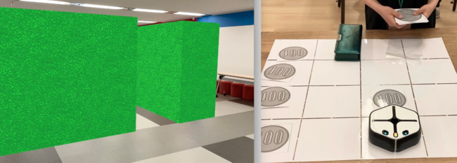 ■ 「Fun Course」では、ロボット掃除機"ルンバ"にそっくりなプログラミングロボット"Root(ルート)"を使用します。プログラミングの仕組みを理解する過程では、Sensory Pathという、コマンド通りの動きを実際に体験するゲームを行います。体を使った楽しいアクティビティのほかには、プログラミングしたRootを動かして、コインを集める数を競うゲームや迷路をデザインする体験など、英語を使いながら思考力、創造力を育む内容となっております。