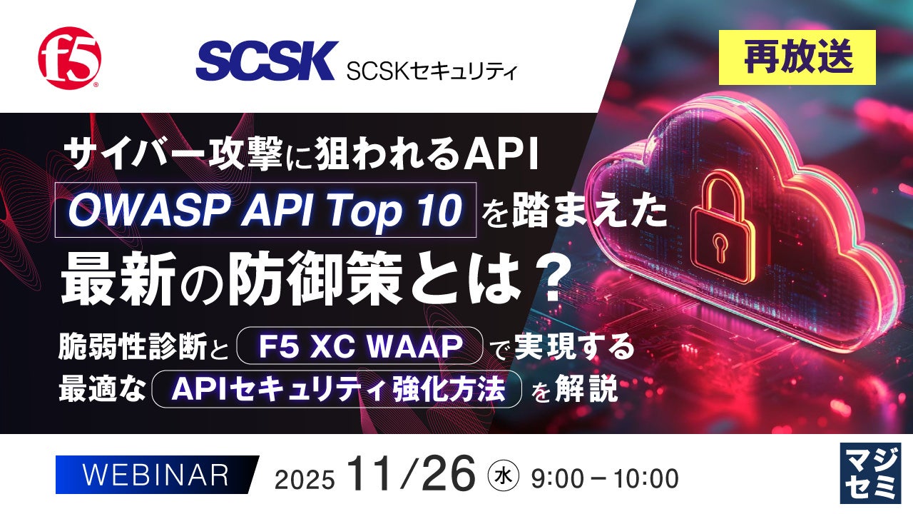 マジセミ株式会社は「【再放送】サイバー攻撃に狙われるAPI、「OWASP API Top 10」を踏まえた最新の防御策とは?」というテーマのウェビナーを開催します。