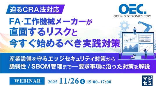 マジセミ株式会社は「【迫るCRA法対応】FA・工作機械メーカーが直面するリスクと、今すぐ始めるべき実践対策」というテーマのウェビナーを開催します。