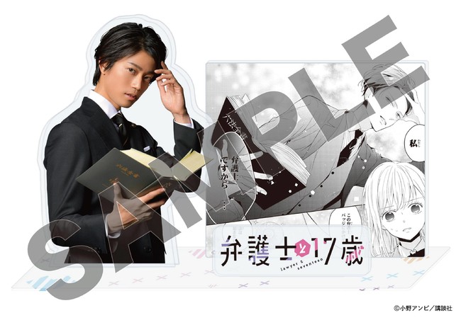 ここでしか手に入らない特別感満載のコラボアクリルスタンドが出来上がりました。約9.4cm×14.5cmのBIGサイズ! 8月12日に発売される『弁護士と17歳』最新6巻の帯についてくる応募券をハガキに貼ってご応募ください。