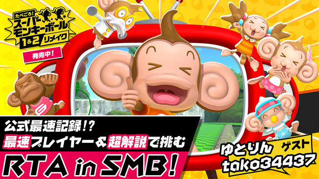 課題ステージをクリアした最短タイムを競う公式キャンペーン「#モンキーボールチャレンジ」で見事1位入賞を果たしたtako34437さんが、プレイヤーとして『スーパーモンキーボール2』ストーリーモードの通しプレイ公式最速記録に挑戦! 発売前の2021年10月5日に実施した「世界暫定最速プレイ」の公式最速記録保持者・ゆとりんさんを解説にお招きします。