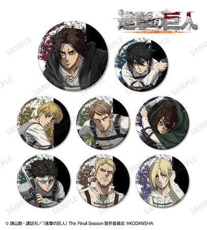 エレン、ミカサ、アルミン、ジャン、ハンジ、リヴァイ、ライナー、アニを缶バッジに仕上げました。