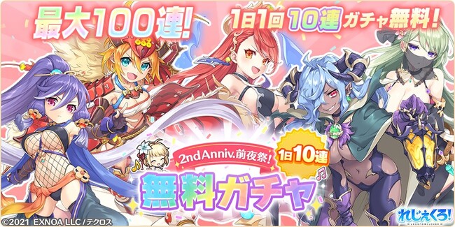 ▼2nd Anniv. 前夜祭!1日1回10連無料ガチャ開催!
