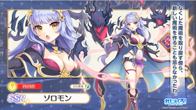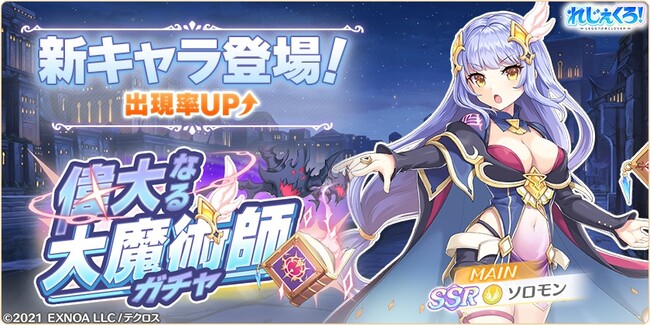 合同会社EXNOA(本社:東京都港区、CEO:村中 悠介、URL:https://games.dmm.com/)が運営するDMM GAMESにおいて、真の英雄となる王道ファンタジー『れじぇくろ!~レジェンド・クローバー~』(https://www.legend-clover.net/)は、最大100連分引ける、2nd Anniv. 前夜祭!1日1回10連無料ガチャを開催!さらに巡る世界で新たな力を手に入れた「ソロモン」が登場!