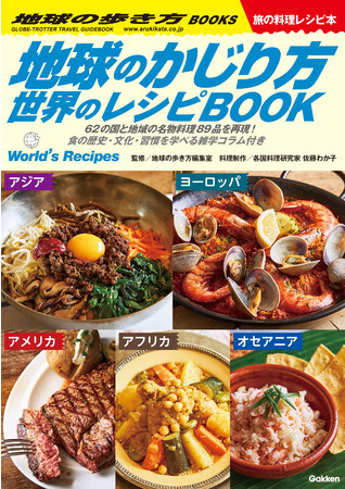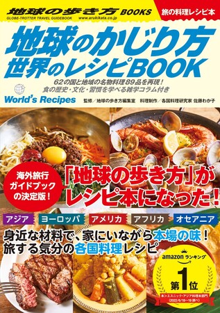 『地球のかじり方 世界のレシピBOOK』は、海外旅行ガイドブックの決定版「地球の歩き方」の全面協力によって実現した、世界のグルメを楽しめるレシピ本。日本で入手できる食材&調味料を使って、62の国と地域の名物料理89品を再現できるレシピを紹介しています。食文化・食の歴史・食習慣など、現地取材データをもとにしたリアルな情報や、「食」に特化した世界の雑学も満載で、家にいながら海外旅行気分、外食気分を味わえると評判です。