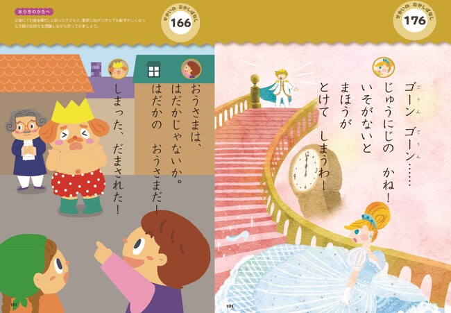 「桃太郎」や「白雪姫」などのおなじみの名作のほか、早口ことばや童謡など、あらゆる分野から、子どもたちが自らすすんで演じたくなり、声に出して読みたくなるフレーズを366日分ピックアップ。後半になるにしたがってレベルが上がり、地の文・会話文の混じった物語を音読します。地の文は大人、子どもが大好きな「 」(かぎかっこ)は子どもが音読、など交代で読んでも楽しいですね。