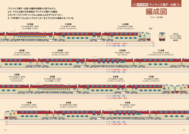 イラストなどで車両編成から、個室の配置までを図解!