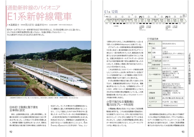 「通勤新幹線のパイオニア E1系新幹線電車」では、初代オールダブルデッカー新幹線のE1系を詳しく解説しています。E4系の陰で地味な存在になってしまいましたが、JR東日本初のフルサイズ新幹線電車として、新技術を多数盛り込んだ、意欲的な設計が浮かび上がります。