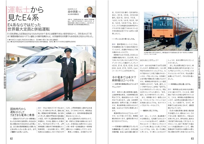 E4系に乗務した運転士、新潟新幹線車両センターで保守にあたった整備担当者へのインタビューを掲載。仕事として携わった人でないとわからない、E4系の素顔を記録します。