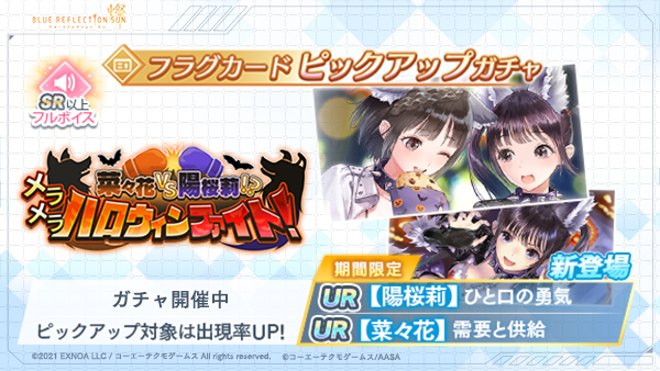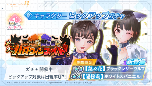 合同会社EXNOA(本社:東京都港区、CEO:村中 悠介、URL:https://games.dmm.com)が運営するDMM GAMESは、スマートフォン/PC向けヒロイックRPG『BLUE REFLECTION SUN/燦』にて、ハロウィンイベント「菜々花vs陽桜莉!?メラメラハロウィンファイト!」を開催したことをお知らせいたします。