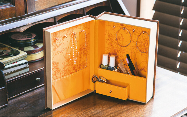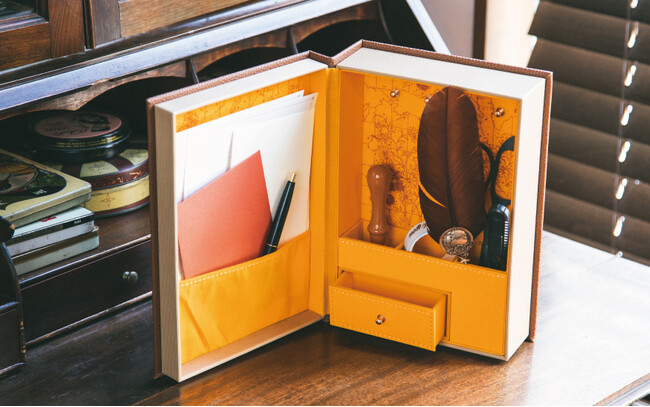 右側は同時展開の「シーリングスタンプ」や「羽根ペン」をはじめ、文房具をたっぷり収納できます。