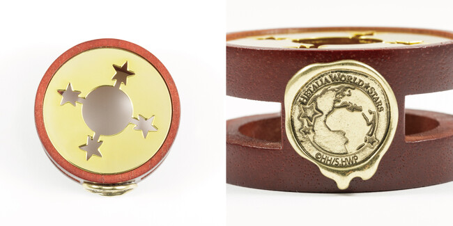 天板の星の模様や、側面についているシーリングスタンプデザインの地球をイメージしたマークが可愛い一品。