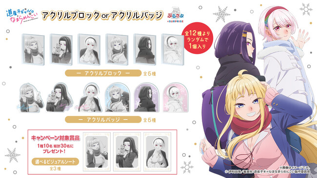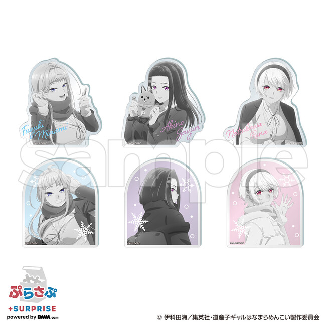 「ぷらさぷ ~+SURPRISE~」第一弾として、2024年1月より放送中の大人気TVアニメ「道産子ギャルはなまらめんこい」より、人気キャラクターのオリジナルグッズが登場!モノクロカラーのシックな仕上がりとなっています。
