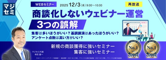 マジセミ株式会社は「【再放送】商談化しないウェビナー運営、3つの誤解」というテーマのウェビナーを開催します。