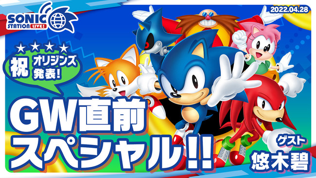 株式会社セガは、「ソニック」シリーズ公式番組「ソニックステーションLIVE! GW直前スペシャル」(以下、「ソニステ」)を、2022年4月28日(木)19時より放送します。