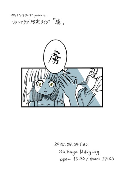 9月14日(日)に東京・渋谷Milkywayにて開催されるファンクラブ会員限定ライブ「虜」は、今年1月に開設されたポップしなないでOfficial Fanclub“POP(ピーオーピー)団”の団員を招いて開催するファンクラブイベントで、ポップしなないでとしては初めてとなる着席型の主催ワンマンライブとなる。