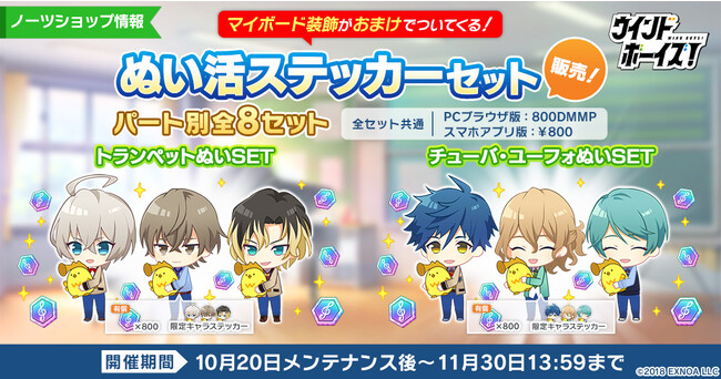 10月20日(金)から部員たちがウインボくんのぬいぐるみを抱きしめているステッカーが入ったノーツセット「ぬい活ステッカーセット」が発売中です。パート別全8種の展開です。ぜひマイボードに飾ってください。