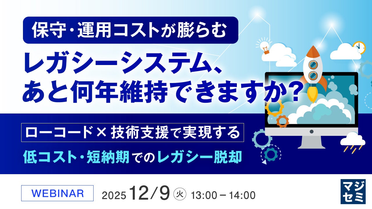 マジセミ株式会社は「保守・運用コストが膨らむレガシーシステム、あと何年維持できますか?」というテーマのウェビナーを開催します。