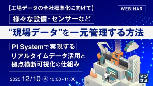 マジセミ株式会社は「【工場データの全社標準化に向けて】様々な設備・センサーなど“現場データ”を一元管理する方法」というテーマのウェビナーを開催します。