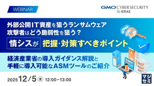 マジセミ株式会社は「外部公開IT資産を狙うランサムウェア、攻撃者はどう脆弱性を狙う? 情シスが把握・対策すべきポイント」というテーマのウェビナーを開催します。