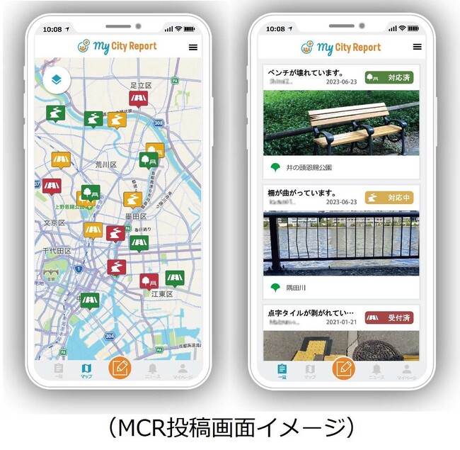 東京都では、道路の損傷や不具合を都民の皆様が簡易に投稿できるスマートフォンのアプリ「My City Report(以下、「MCR」という。)」を令和4年度から本格導入しており、迅速できめ細かな道路管理に役立てているところですが、新たに、上野恩賜公園など23の都立公園と隅田川を運用範囲に加えることとしました。