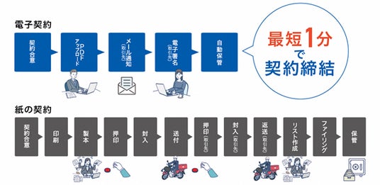 契約の締結から管理までをワンストップで行えるクラウド型の電子契約サービスです。印紙税や郵送費の削減、契約締結にかかる手間の軽減や時間の大幅な短縮により、業務の効率化を実現することができます。