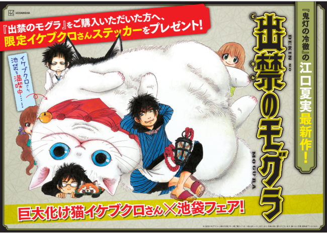 この発売日以降、池袋エリアの対象書店限定で「巨大化け猫イケブクロさん×池袋フェア」と題したフェアを実施します。『出禁のモグラ』1~3巻を購入した方へ、江口夏実描き下ろしイケブクロさんの限定ステッカーをプレゼント!
