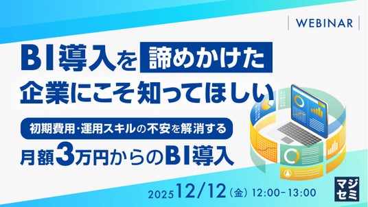 マジセミ株式会社は「BI導入を「諦めかけた」企業にこそ知ってほしい」というテーマのウェビナーを開催します。