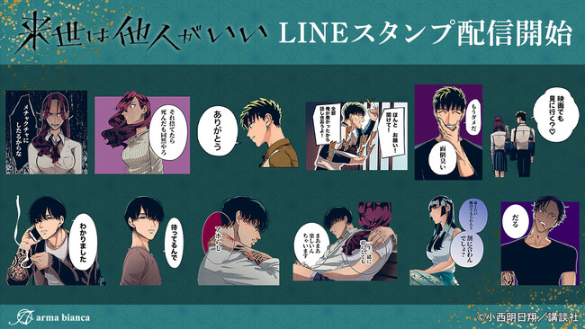 株式会社アルマビアンカ(本社:東京都中野区、代表取締役:坂井智成)は「来世は他人がいい」のLINEスタンプ配信を10月7日より開始いたしました。