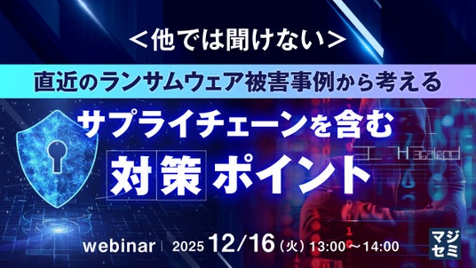 マジセミ株式会社は「<他では聞けない>直近のランサムウェア被害事例から考える、サプライチェーンを含む対策ポイント」というテーマのウェビナーを開催します。