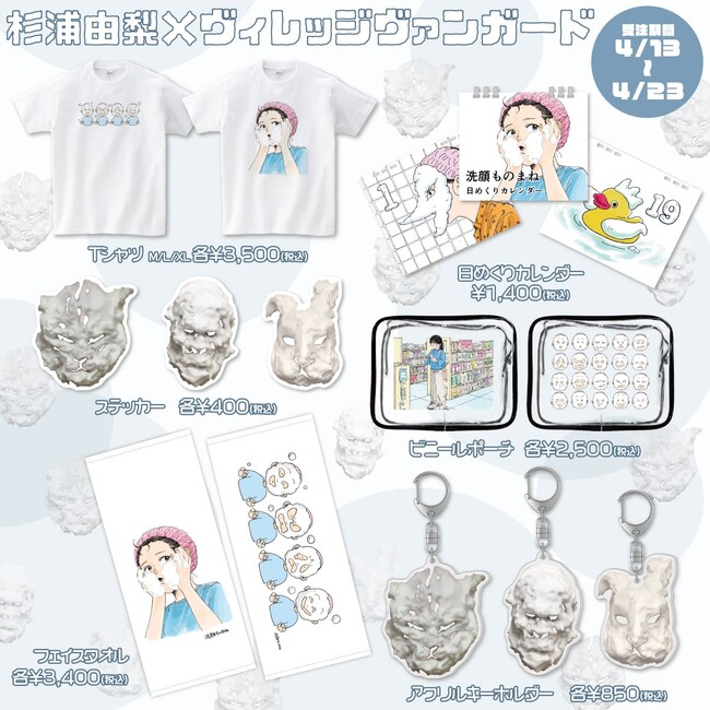 2023年4月13日(木)より、YouTuber【杉浦由梨】とヴィレッジヴァンガードの限定コラボグッズが発売決定!!洗顔ものまねでおなじみの杉浦由梨さんの、描きおろしキャラクターを使用したグッズは必見!!期間限定の完全受注販売グッズをお見逃しなく!!!