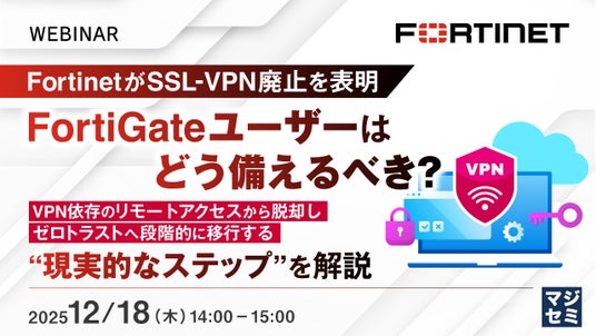 マジセミ株式会社は「FortinetがSSL-VPN廃止を表明、FortiGateユーザーはどう備えるべき?」というテーマのウェビナーを開催します。