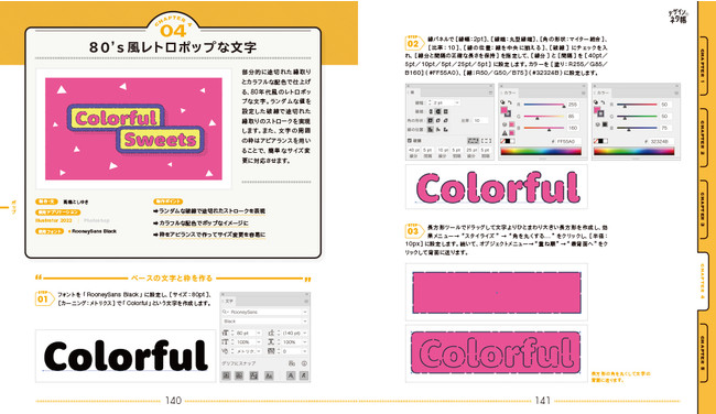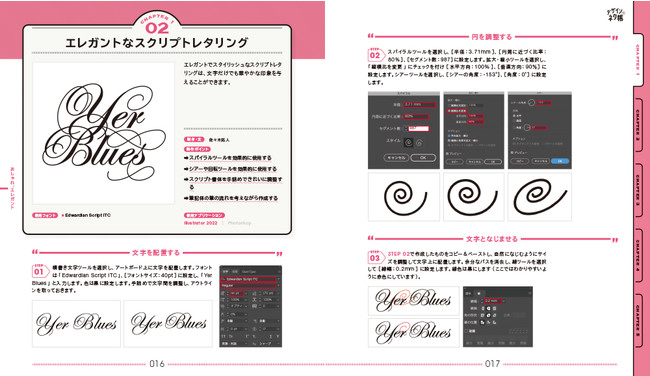 本書は、その中でも多くの人にとっての課題となる「文字デザイン」にフォーカスし、さまざまな業界・業種のデザインワークをおこなっている7人のプロフェッショナルが、いますぐ使える手法や効果を実践的な作例を使い、効果的な文字デザインの作り方を丁寧に解説しています。紙面に掲載の作例のサンプルデータはダウンロードできるので、合わせて学習に活用できます。