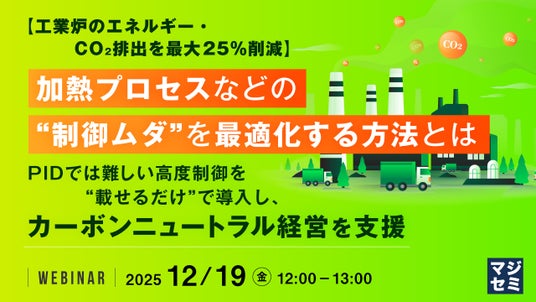 マジセミ株式会社は「【工業炉のエネルギー・CO2排出を最大25%削減】加熱プロセスなどの“制御ムダ”を最適化する方法とは」というテーマのウェビナーを開催します。