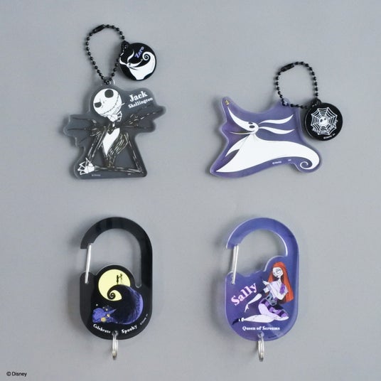 コレクションしたくなるハロウィン・タウンの住民が描かれた缶バッチ、透け感がおしゃれなアクリルキーホルダーやカラビナ、キャリーケースにセット出来るキャリーバッグなど全23品番をラインアップ。