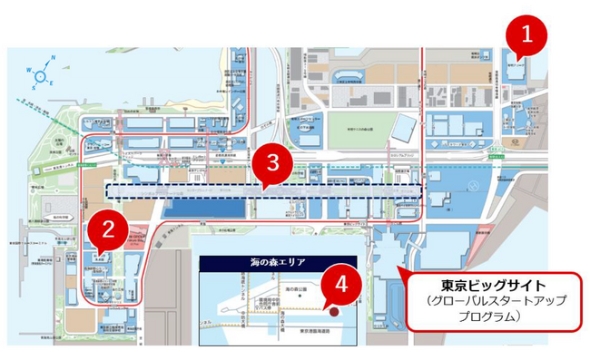 会場:有明アリーナ、日本科学未来館、シンボルプロムナード公園、海の森エリア