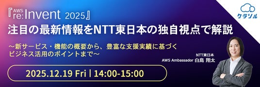 マジセミ株式会社は「『AWS re:Invent 2025』注目の最新情報をNTT東日本の独自視点で解説」というテーマのウェビナーを開催します。