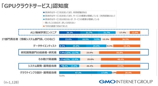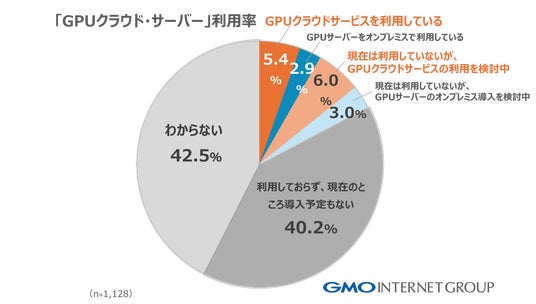 GMOインターネットグループ株式会社(代表取締役グループ代表:熊谷 正寿)は、国内企業のIT部門責任者・担当者1,128名を対象に、GPUクラウドサービスの認知度と利用実態に関する調査を実施しました。