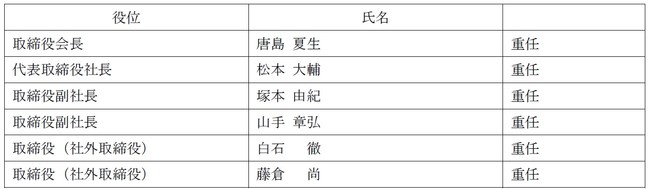 当社は、5月12日開催の取締役会において、来る6月23日開催予定の第30期定時株主総会に付議される予定の取締役人事および定時株主総会終了後開催予定の取締役会に付議される予定の新経営体制について、下記のとおり内定いたしましたのでお知らせいたします。