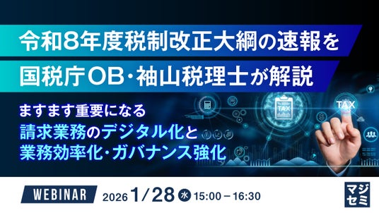 マジセミ株式会社は「令和8年度税制改正大綱の速報を国税庁OB・袖山税理士が解説」というテーマのウェビナーを開催します。