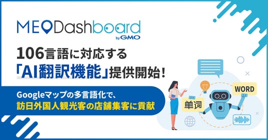 GMOインターネットグループでインターネット上の集客サービスを展開するGMO TECH株式会社(代表取締役社長CEO:鈴木 明人 以下、GMO TECH)は、2024年9月26日(木)より、MEO総合管理ツール『MEO Dashboard byGMO』にて、106言語に対応する「AI翻訳機能」の提供を開始いたします。この機能により、Googleマップ上での情報発信や口コミへの返信を多言語で行うことができ、外国人観光客をターゲットとした店舗集客を支援します。