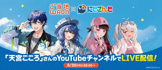8月30日(金)20時より「天宮こころ」さんのYouTubeチャンネルで、「ご当地WAON×にじさんじ」コラボ記念のLIVE配信を実施します。