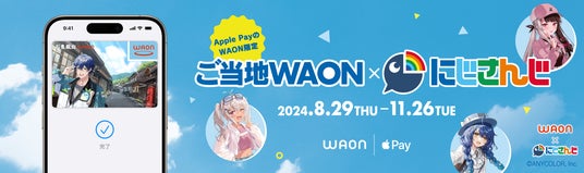 イオンリテールは8月29日(木)より、イオンの電子マネー「WAON」とANYCOLOR株式会社が運営するVTuber/バーチャルライバーグループ「にじさんじプロジェクト」とのコラボレーションカードを、Apple PayのWAONにて期間限定で発行します。