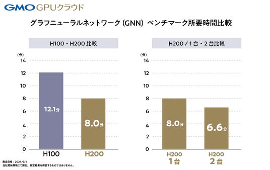 GMOインターネットグループは、「GNN のベンチマーク」と「LLMファインチューニング」の2つのシナリオにおいてH200 GPU とH100 GPU の性能を比較しました。