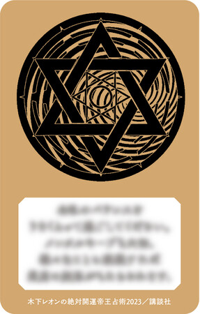 カードの裏面には、木下レオンからの“絶対開運“メッセージが書かれています(プリント)。メッセージは8種類あり、その中からひとつ、2023年のあなたに必要な言葉が届きます。