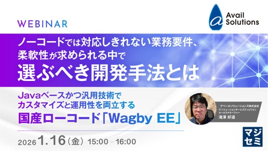 マジセミ株式会社は「ノーコードでは対応しきれない業務要件、柔軟性が求められる中で選ぶべき開発手法とは」というテーマのウェビナーを開催します。